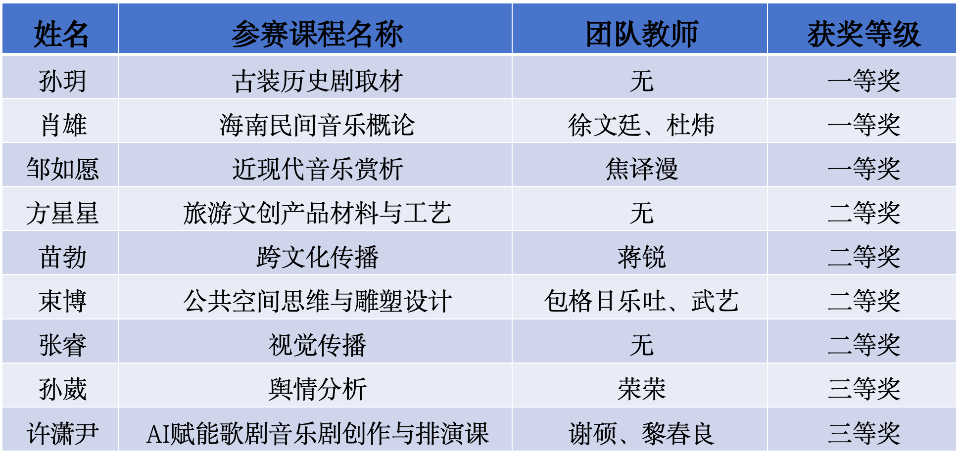 我院教师结合自身教学实践,围绕“AI赋能课程建设”,将AI图像、视频生成、剪辑、三维建模、数字人、大数据等技术与中国优秀传统文化、音乐、设计、大众传播等议题结合,积极参赛,斩获佳绩。孙玥、肖雄、邹如愿荣获一等奖,方星星、苗勃、束博、张睿荣获二等奖,孙葳、许潇尹荣获三等奖。