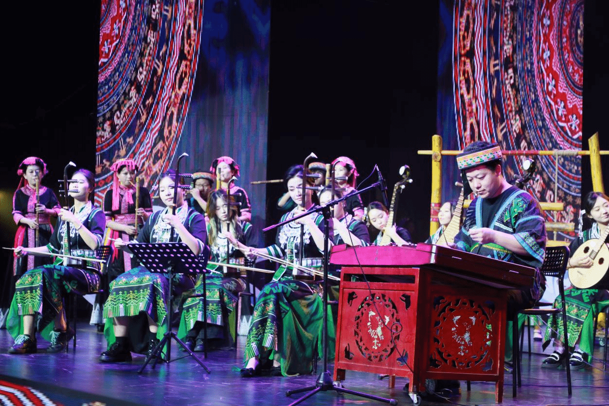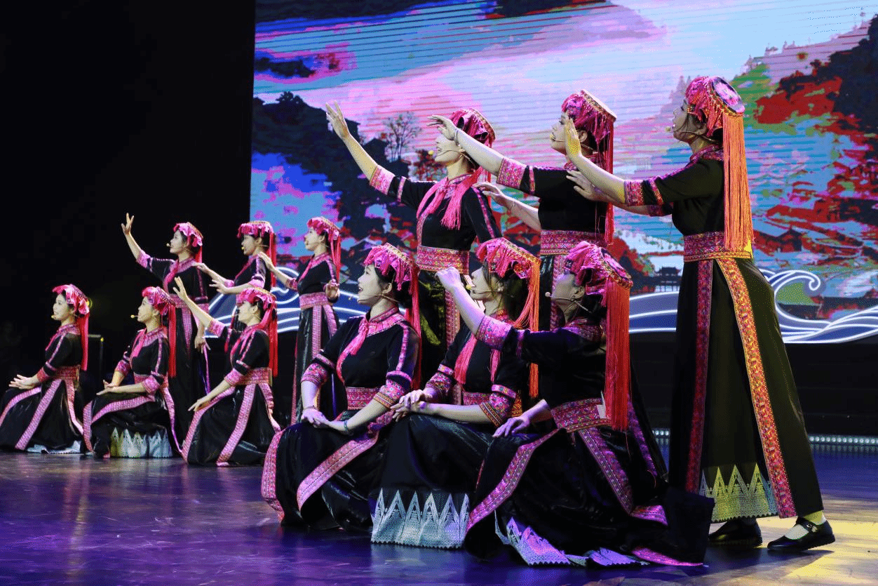 4月13日晚,热区高校联盟2025年年会文艺晚会在william威廉中文官网思源学堂大礼堂举行。《苗歌请来幸福水》节目表演现场宣传部 摄