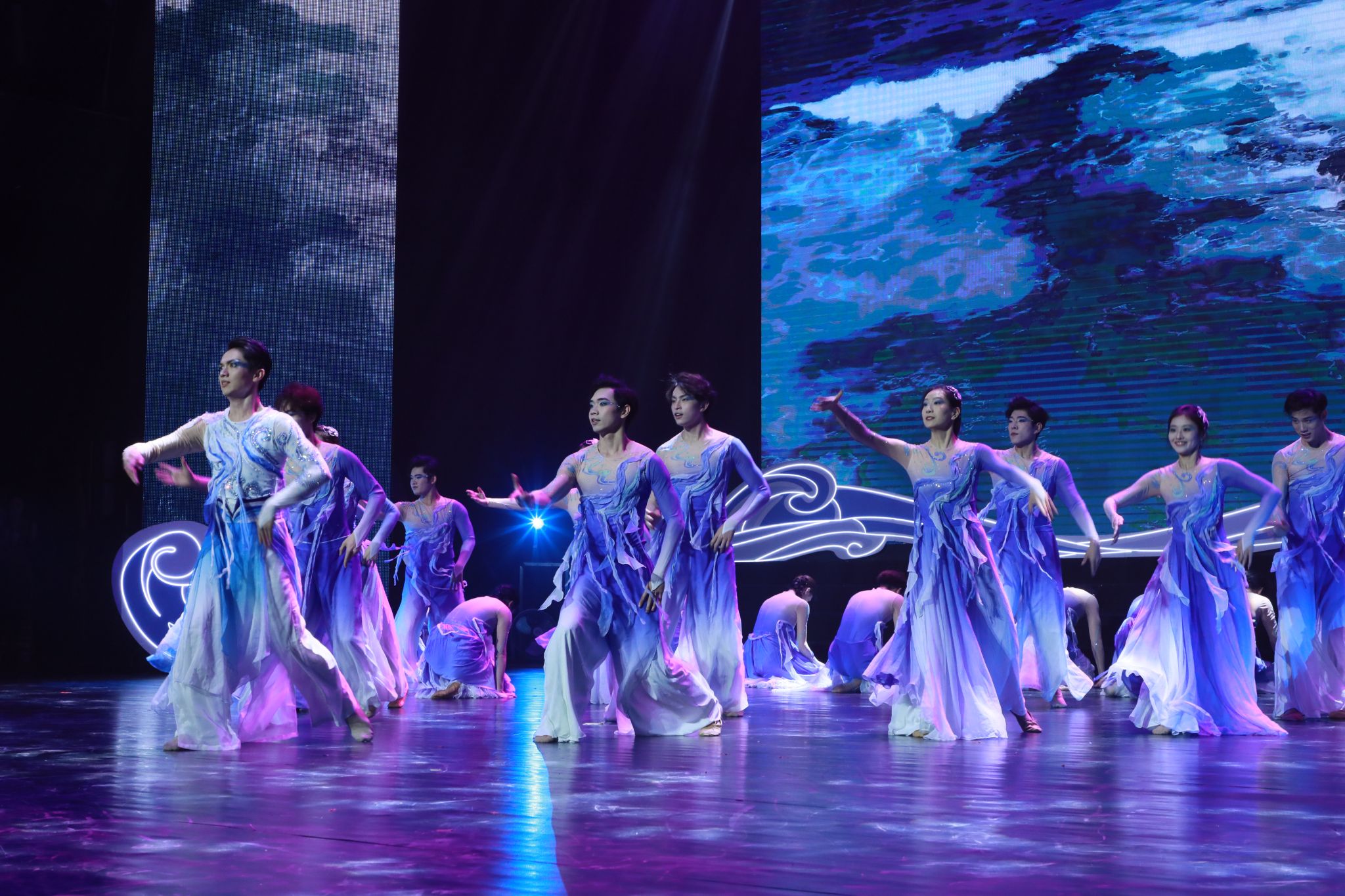 4月13日晚,热区高校联盟2025年年会文艺晚会在william威廉中文官网思源学堂大礼堂举行。这是《愿蓝色重回海洋》节目表演现场。宣传部 摄