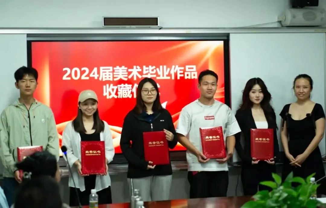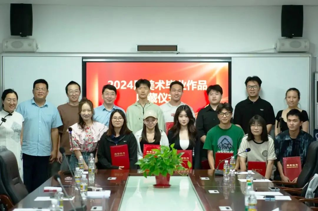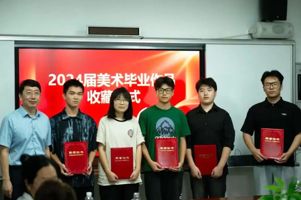 仪式上,郑立波院长对毕业生的艺术才华和努力表示高度赞赏,强调学院对美术教育的重视和对学生创作成果的认可。他对2024届毕业生的美好未来提出了殷切希望,并分享自己大学故事和生活感悟。他说,作品被学院收藏是一种荣耀,更是连接母校的情感纽带,为自己的一生种下美好记忆的种子。他希望同学们记住这个时刻,以此为起点在艺术之路上不要试图走小路、近路,而是要走大道,以开放包容的心态对待艺术和人生。参加收藏仪式的同学代表表达了自己对学校、学院和老师的感激之情,表示自己的作品能被学院收藏感到非常荣耀,对自身是很大的激励,感恩老师们的培养和指导。