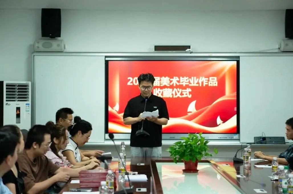 郑立波院长、袁琳副院长给同学们颁发了收藏证书,绘画专业副教授元志东主持活动,近40位师生参加收藏仪式。