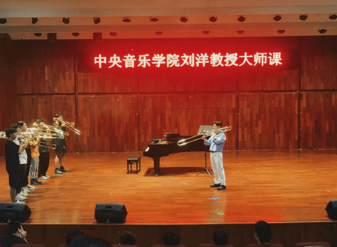 大师课上,刘洋教授带领同学们进行气息训练,用心传授吹奏技巧。期间,他对我院学子的专业水平给予了高度评价。凭借丰富的演奏经验和深厚的专业素养,刘洋教授为参加本次讲座的师生们带来了一场号声跃动的知识盛宴。