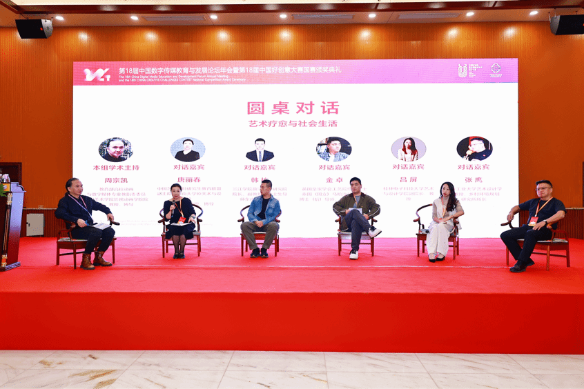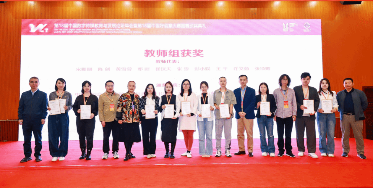2024年11月1日—3日,第18届中国数字传媒教育与发展论坛年会暨第18届中国好创意暨全国数字艺术设计大赛国赛颁奖典礼在桂林隆重举行。我院获奖师生代表唐丽春教授、邓晰副教授、徐扬副教授、裴彦西、徐蓉蓉同学参加了本次颁奖典礼。