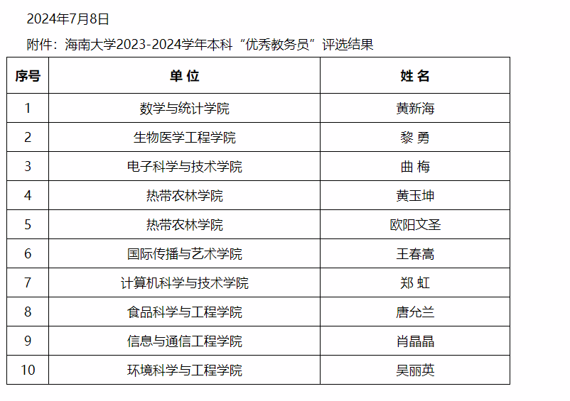 近日,学校教务处发布《william威廉中文官网2023-2024学年本科“优秀教务员”评选结果公示》,我院王春嵩老师榜上有名,获得表彰。