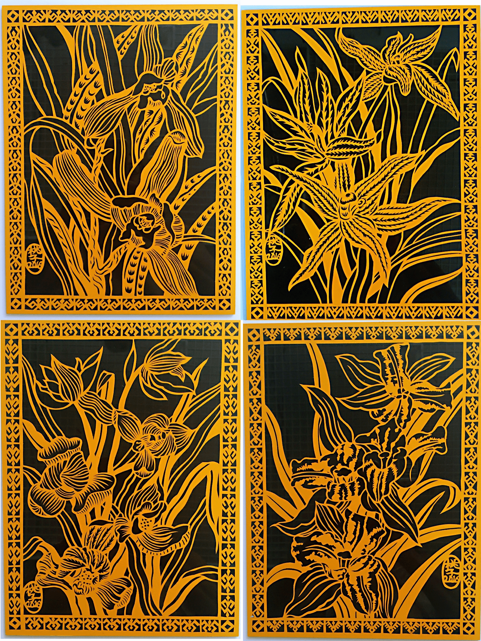 课堂上,黄海桃老师首先结合相关政策介绍,让同学们认识到剪纸艺术及中华优秀传统文化的重要性。接着从剪纸的起源与发展切入进行阐述,阐明了剪纸不仅是世界级非遗,更是中华民族共同体的符号象征。黄老师结合自己的作品和人生经历,分析了传统纹样的文化逻辑与象征寓意,着重讲述了她的作品对海南黎族图腾、热带植被及海洋文化等特色地域元素的融入方式。