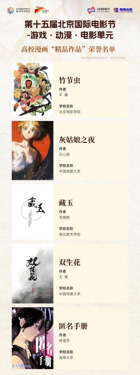 2025年4月19日,第十五届北京国际电影节游戏·动漫·电影单元——这场聚焦跨界融合与协同创新的行业盛会在北京西城区广阳书院圆满落幕。作为备受关注的青年动漫创作人才孵化平台,高校作品评选在现场揭晓评选结果。我院2020级视觉传达专业学生林雪芳的漫画作品《匿名手册》(作者:林雪芳,指导老师:李晓夏,邓晰)从600余部漫画作品中脱颖而出,荣获高校漫画“精品作品”。