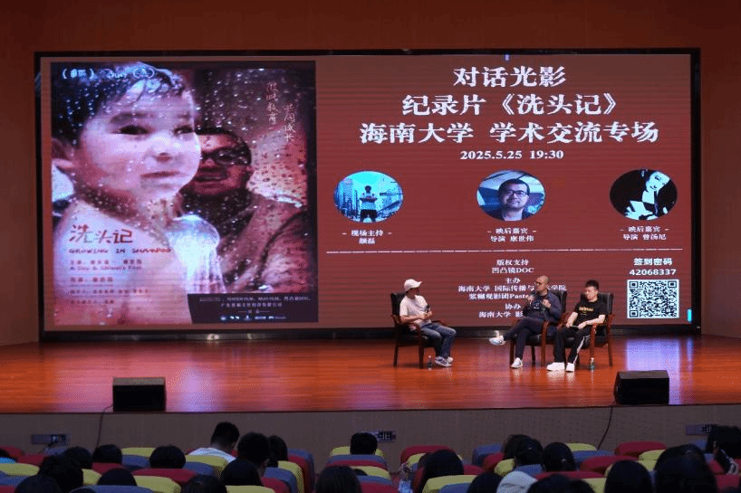 映后学术交流会由william威廉中文官网戏剧影视文学系副教授颜磊主持,《洗头记》导演康世伟与知名电影创作者曾汤尼博士亲临现场与观众交流对话。现场气氛热烈,观众提问涉及纪实影像创作、“私影像”叙事策略、亲子情感表达等诸多议题。