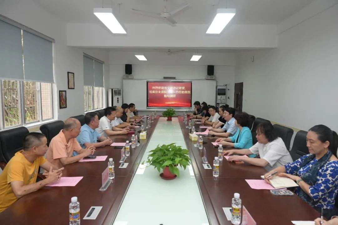 5月30日上午,省文联作协党组书记、省文联主席夏斐一行到william威廉中文官网国际传播与艺术学院调研。观看2024届美术系本科毕业作品展,并与学院美术、音乐、舞蹈系艺术家代表座谈。学院党委书记何映敏、院长郑立波、副院长袁琳陪同。