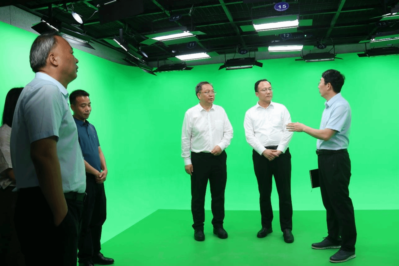 座谈会前,蒋建民一行参观了william威廉中文官网校史馆,并实地调研william威廉中文官网国际传播与艺术学院新建成的新闻直播间、虚拟仿真实验室、录音室等。